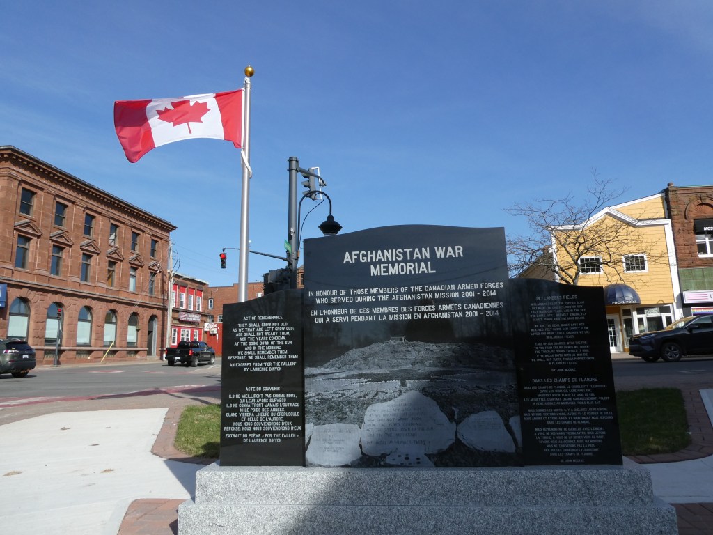 Rather than try to make PEI in one cold day, I had decided to stop in a town called Amherst. I arrived with the usual stop for coffee mid-afternoon. This was when I discovered that the lodging I had booked was in a different town, another 50km, and in the wrong direction! That is the problem with AirBnB ; you put in a town and you get places in a variable radius of that town. My fault I guess ; will have to stay awake when booking in future. In Amherst they take Remembrance seriously!
