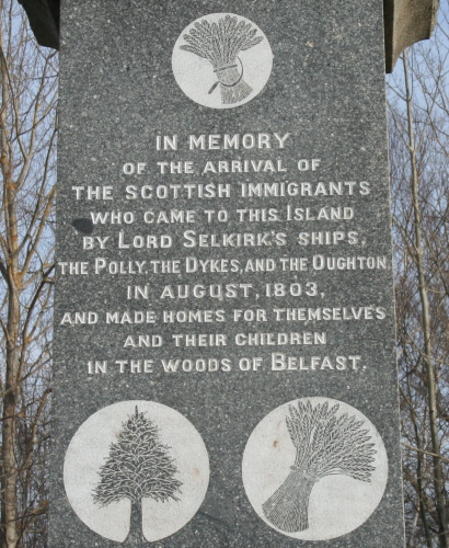 All the documents I had found, and the monument pictures above, started with the arrival of, what have become known as, Lord Selkirk’s Scottish settlers. The puzzling part was that in 1803 they landed at Belfast Cove, meaning the place was already called Belfast. This fact was repeated in everything I read; maybe the authors were using the name in a retrospective manner so as to make it easier for contemporary readers to understand the story and locate the site.