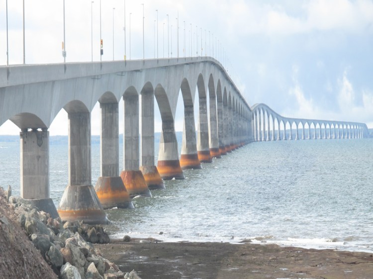 I set off for and, with very little to say about the route, arrived on Prince Edward Island about 1 ½ hours later. The impressive bridge joining Prince Edward to the mainland opened in 1997 ; it is 13km long, and climbs to two peaks during its length. I was told this is to allow ships to pass underneath ; I responded that I would look carefully, left and right, for any approaching container ships 🙂