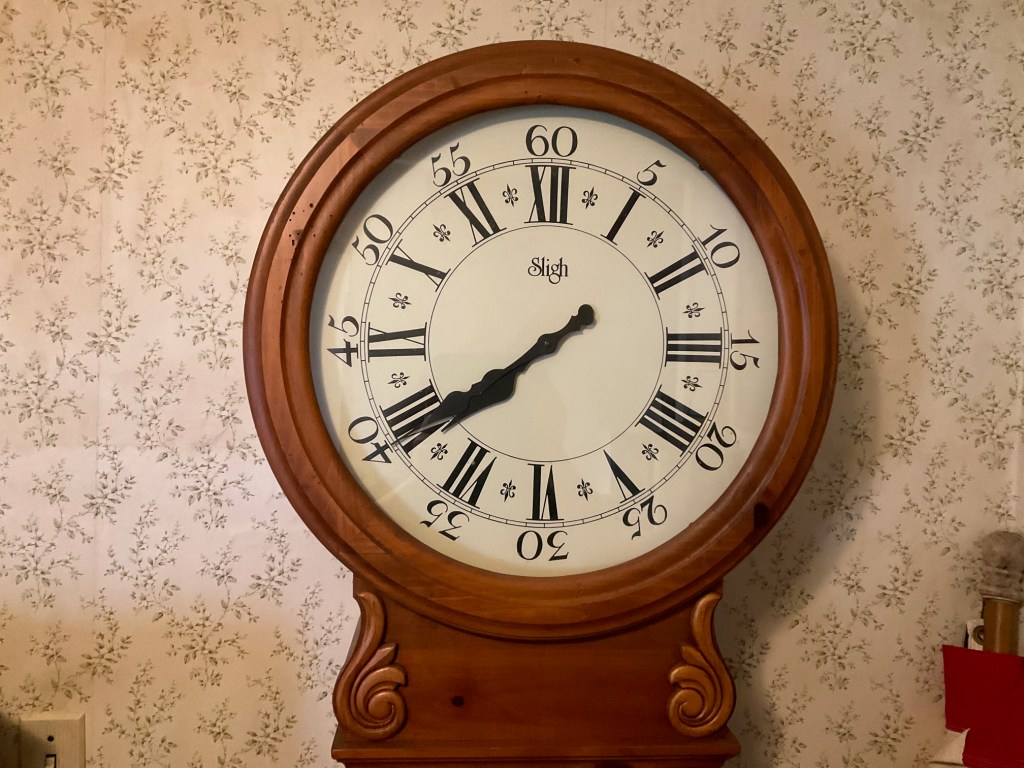 The Inn itself is in a house, dating from 1859, although the original was burned down and rebuilt in 1896. It is tightly furnished with aged, though not aging, furniture from the earlier part of the last century and before. For me the best things were the clocks; wall clocks, mantel clocks; a grandmother clock… None were running but I was assured that all were in working order. My favourite was one that puzzled me for several moments when I saw it first. Then I realised what it was; the numbers were upside down at the bottom. They are written as if viewed from the centre of the clock face, and while this is not unknown with Roman numerals – the “VI” looks like this “ΛI”, I could find no other example online.