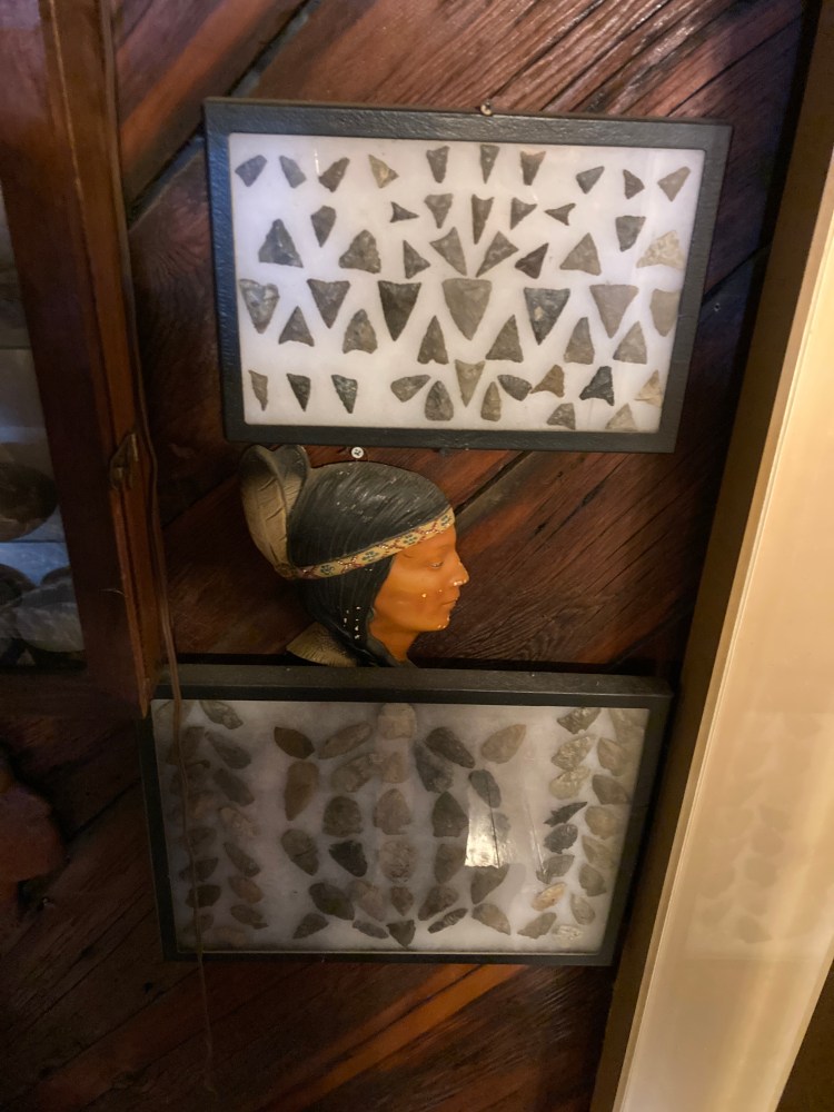 Brenda and Larry Had a remarkable house. The interior was designed, developed (I’m not sure of the right word) and constructed by themselves,and was the most esoteric and individual home I have ever seen. They both, but Brenda especially, have a great interest in local history and they have the most amazing collection of artefacts, many being hundreds, if not thousands, of years old; most are arrowheads, spread heads and other Stone Age (my guess) tools. The house had been extended and fashioned using wooden boards and other materials recovered from derelict local barns and houses. What Larry has accomplished with this is truly amazing; the spiral staircase e.g. is hand made and the rail is fashioned from a polished tree branch. I cannot do it justice in words, so I hope the couple of pictures help – I should have taken more.