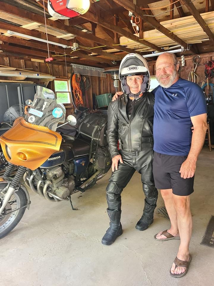 I arrived at Eve Kushner’s house later than planned and absolutely soaked, having ridden for about 3 hours in heavy, continuous, and at times torrential, rain from Niagara Falls. Fortunately, my 1980’s vintage rain suit is still 100% waterproof. Sadly, the company, Balerno, seems to have disappeared as I could find no trace of it online; if anyone knows differently, let me know.
