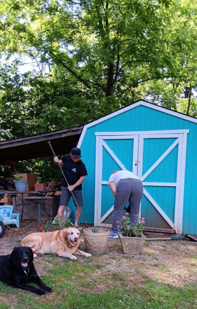 Helping out with the trash is one thing, but having to dig rocks out of the garden is quite another; when I was told to feel at home, I didn’t realise this included becoming part of the household labour force! This was because Bobbie wanted to lay some pavers to prevent rain splash on her newly painted shed. I suggested she just paint the bottom ½ metre brown or black, but clearly this wasn’t acceptable.