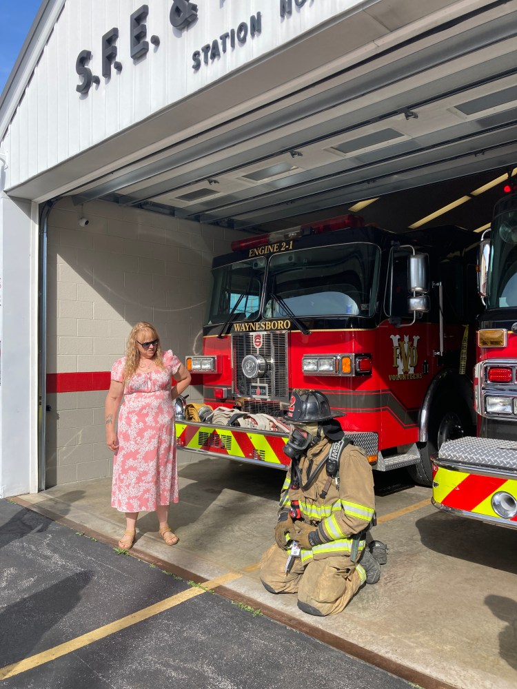 The lunch was in a meeting room attached to the local volunteer fire station and the younger kids went out to see the fire engines. They were joined by a few and eventually by all the adults as the duty volunteer showed us around the two trucks. I was amazed and the quality and quantity of/ equipment that was stored in every nook and cranny of the trucks; if I am ever involved in an accident requiring rescue, I’d be delighted to see one of these arriving on the scene. The young firefighter then demonstrated his personal equipment, donning his full suit – helmet, mask and all – in spite of the heat of the afternoon.
