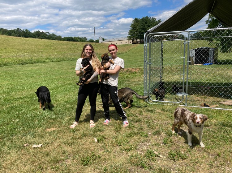 I was doing all this calling from the porch of a house that conveniently was just next t the site of my fall. This was the home of Ali and Skyler – at least they were the only ones ther at the time – tow delightful girls who helped me feel not so bad. Ali had just bred a litter of German Sherpherds and had 5 (I think) delightful pups gambolling about. The interesting thing was the colours; apparently, GSs come in 15 different colours ranging from white, the most common (in my, clearly limited, experience) black and tan, the original sable to the more uncommon black and red, blue and liver colours. If you are interested in more detail, look here.