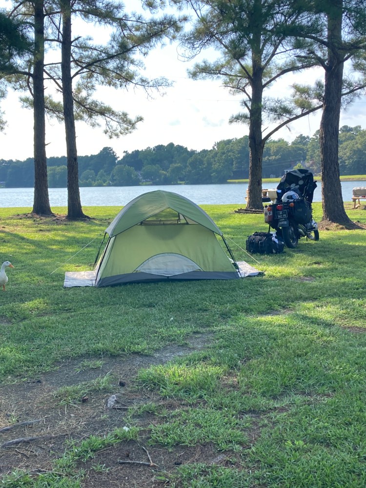Our Bunk-a-Biker host for the night let us down by not supplying an address as we got close, so we decided to head on down to Terry’s sister’s house in Raeford. (She did get back to us eventually but by then it was too late to change our new plan). This made the day’s ride 454 km, taking us some 8 hours.