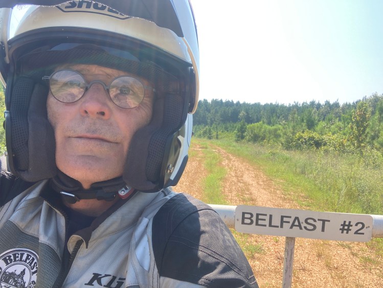 It would be a few hours before Michelle got home, so in the meantime I rode on down into Belfast – the new one – to see what there was to see. It is a beautiful, sleepy wooded rural spot. I could live here with no problem. Apart from a sign on a farm gate, there was nothing to suggest this was Belfast.