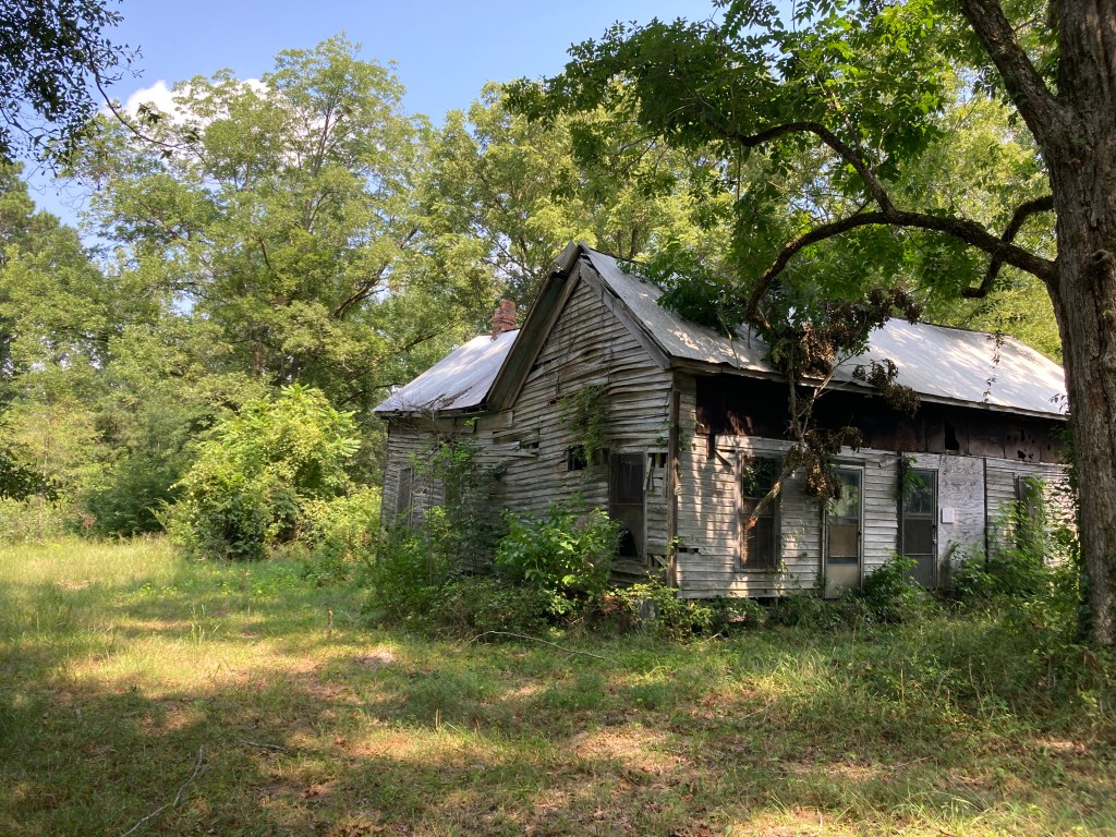 Not a lot remains, of the store, pharmacy, railroad depot and church, other than a few dilapidated or collapsed buildings. The railroad that caused the migration had been pulled up many years back and all that remained was a long straight track.