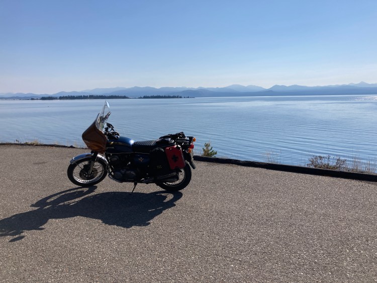 At Old Faithful, I met a couple of Canadian bikers, who strongly recommended the Beartooth Pass, a road I had opted to miss. He said it was about the best road he had ever ridden in N America; when his opinion of Old Faithful concurred with mine, I thought, maybe I should heed his advice, especially as he wasn’t the first to offer this. The guys I bought the wood from, also said something similar, so now I am reviewing my plan. I think maybe to stay here an extra night, which would allow me to do the pass and back, without having to carry all my gear along.