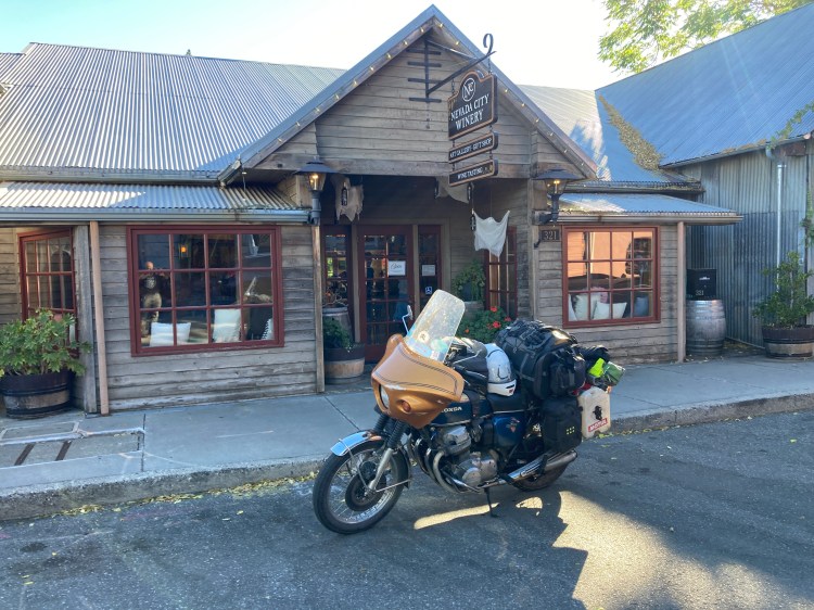 My next stop was in Nevada City and I just happened to stop outside Nevada City Winery. I wandered in just to enjoy that distinctive smell of cork, wine and earth that typifies such places. Here I met Amber and Paula, who introduced me to their “Library Wines”, some older wines that they were trying to clear; these were 15 years old, which, for me, was unusual for Californian wines. So, breaking my normal rule of not drinking alcohol while riding, I sampled four of their wines (I did spit out the sample). I ended up with a couple of bottles that I then had to find space for.