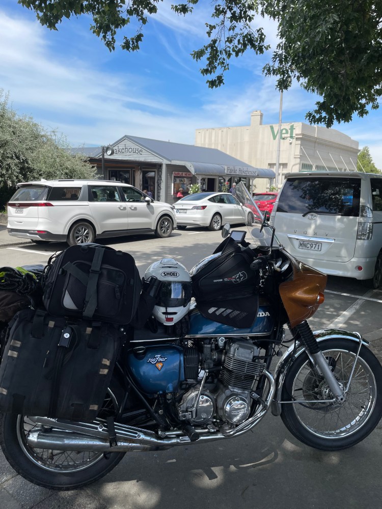I filled up at a little private station attached to a workshop, with two very friendly owners. Here I also got something I couldn’t get in Pukekohe – spark plugs! Having replaced he plugs with my spare set I wanted to get another set, but none of the shops in Pukekohe, including the bike shops had the, what I thought were common, plugs. The lady owner boasted, when I enquired, that she had every plug under the sun; and, right enough, when I went to the rack, there they were! 😁