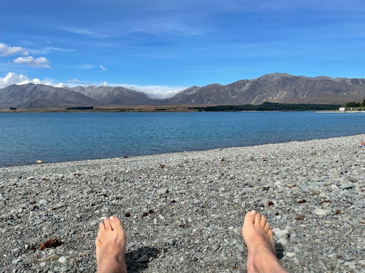 The ride and the weather improved after this and I arrived at Lake Tekapo, in the Dark Sky Reserve in good time for a bracing swim in the lake – it did get more pleasant once I was, or maybe I just stopped feeling the cold as much.