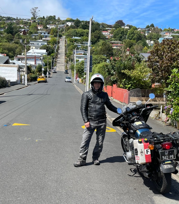 I took a ride on my own to see some of the sights in Dunedin and the surrounds. These sights included the steepest street in the world, Baldwin St. I thought the street I parked on in San Francisco was steep, but this one took the biscuit. I was relieved when I got to the top to find a small flat area as I think it would have been impossible to turn around on the hill. I ended my ride along the peninsula coast road in a little seaside village called Portobello, from where I called Davy and Adele to come for a beer; they weren’t hard to persuade!