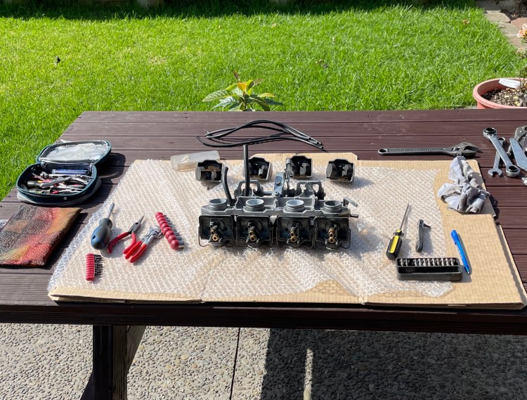 The only real hiccough, if I could call it that was the deposits I found in the carburettors. This was surprising as it had only been sitting for a matter of weeks, but since some spray on cleaner wouldn’t shift it, a full strip was required. I wasn’t able to find anyone with an ultrasonic cleaner, so in the end had to submit them to my friends at Counties Honda, who cleaned them, only charging me $140 to do so.