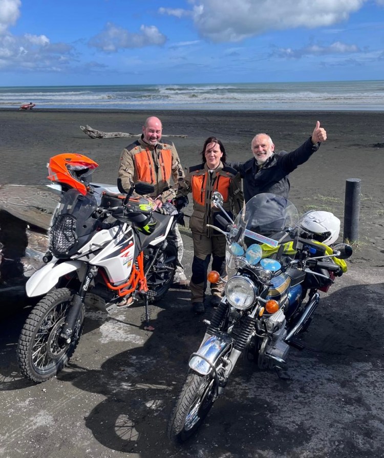 A few days later the bike was finally complete with its new screen, suitably decorated, ready for our second short test ride, this time to Karioitahi Beach.