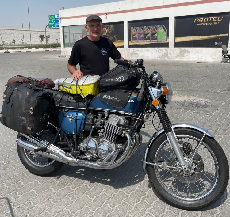 There , I learned two things: first the computer system wasn’t working properly and then, after an hour of waiting, that the ferry was full and I had no chance of a seat! Conrad, my brother, suggested that I should park the bike and go home for a while, and, after considering the only other possibility – riding through Saudi, Kuwait and Iraq in temperatures up to 50ºC – I decided that this was the way to go. All I had to do was find somewhere to store my bike.