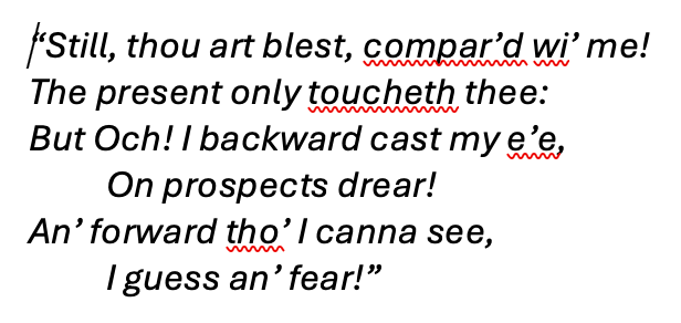 How many times ,on this self-imposed odyssey, have I been reminded of Burns’ poem: