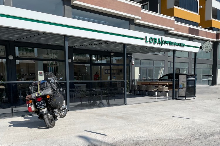 A simple day. On the road by 0700. 2 hours and 200km to breakfast in Loba Café, Mersin – a remarkably good croissant filled with ham cheese and tomato.