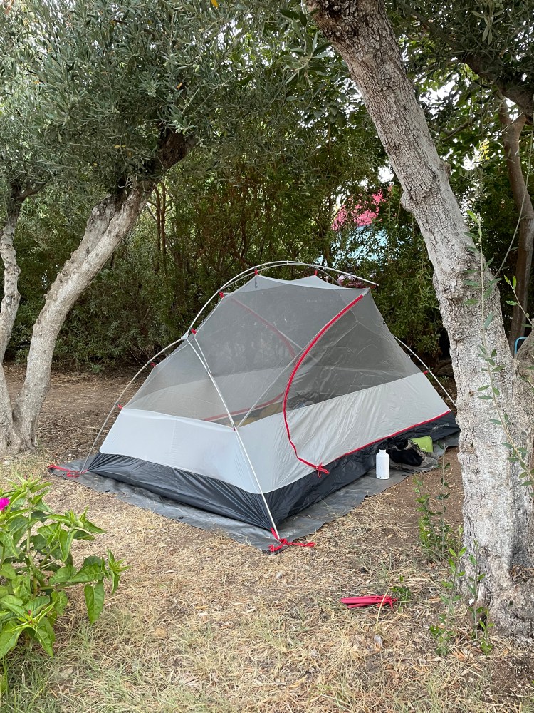 Camping Proti, was advertised as a beach-side campsite. It wasn’t! It did have a 50 metre swimming pool though, so I did a few lengths, which revealed how out of condition I am.