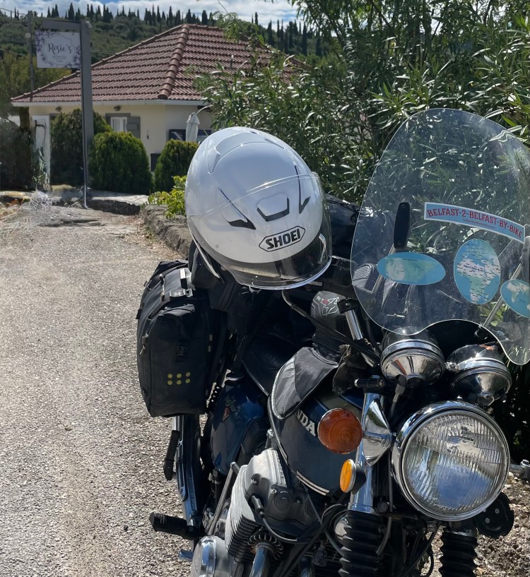 The ride to Fiskardo was on more neat mountain roads. On the way I passed by a little cafe called Rosie’s, so I just had to stop for a break. (I have a friend called Rosie, and we have shared many a cup of coffee.) The ferry ride was “rolling”, illustrating why it would be cancelled if the winds got up a bit.